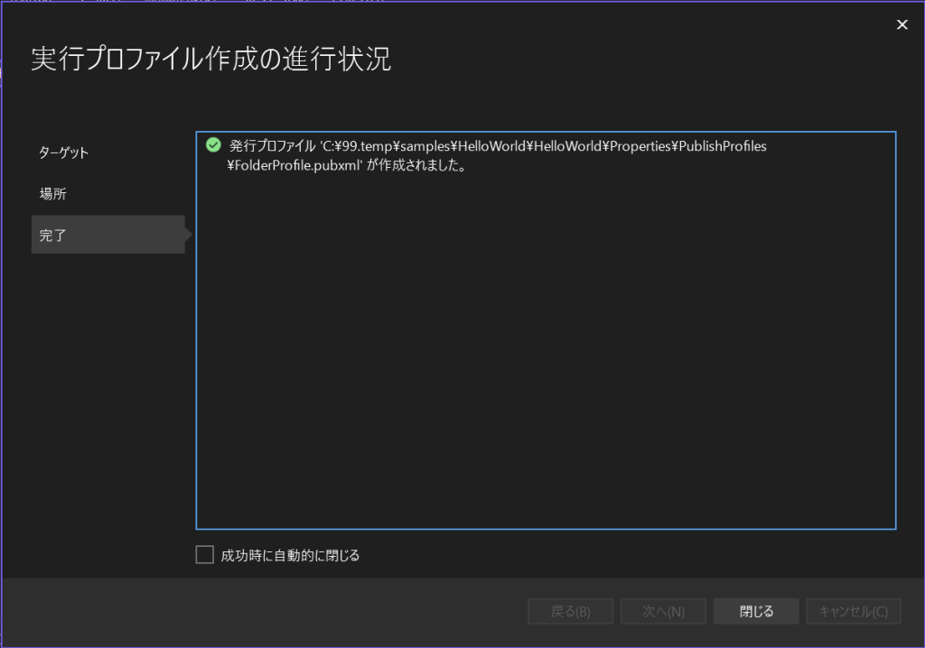 前画面で完了ボタン押下で、以下のように発行プロファイルが作成されます。