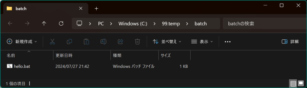 基本中の基本である、バッチファイルの作成と実行方法を確認します。