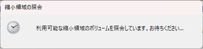 しばらくすると、縮小できるサイズを選択ができるようになります。赤枠内の「縮小する領域のサイズ」分が現状のディスクから切り離されると考えてください。