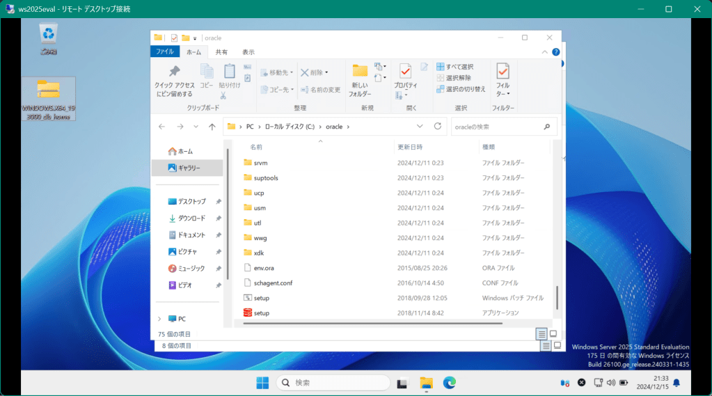 ここでは「WINDOWS.X64_193000_db_home.zip」のインストールファイルを「C:¥oracle」として解凍してインストールを開始します。「setup.exe」をダブルクリックして起動します。