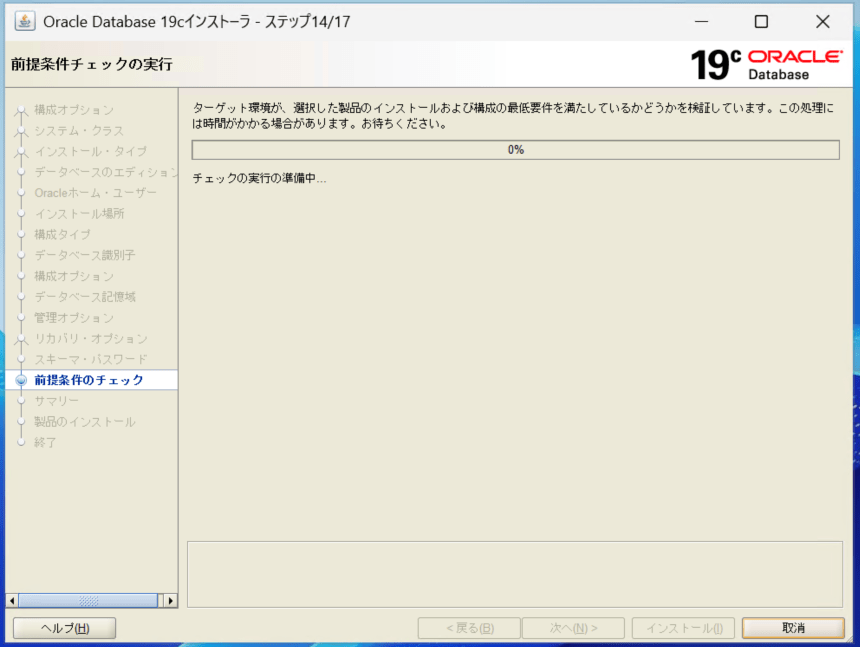 チェックをパスしたら、「サマリー」画面でインストール内容を確認し、インストールを開始します。