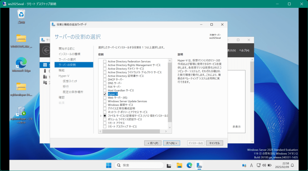 | 仮想マシン | Windows Server 2025 Standard(評価版) |
