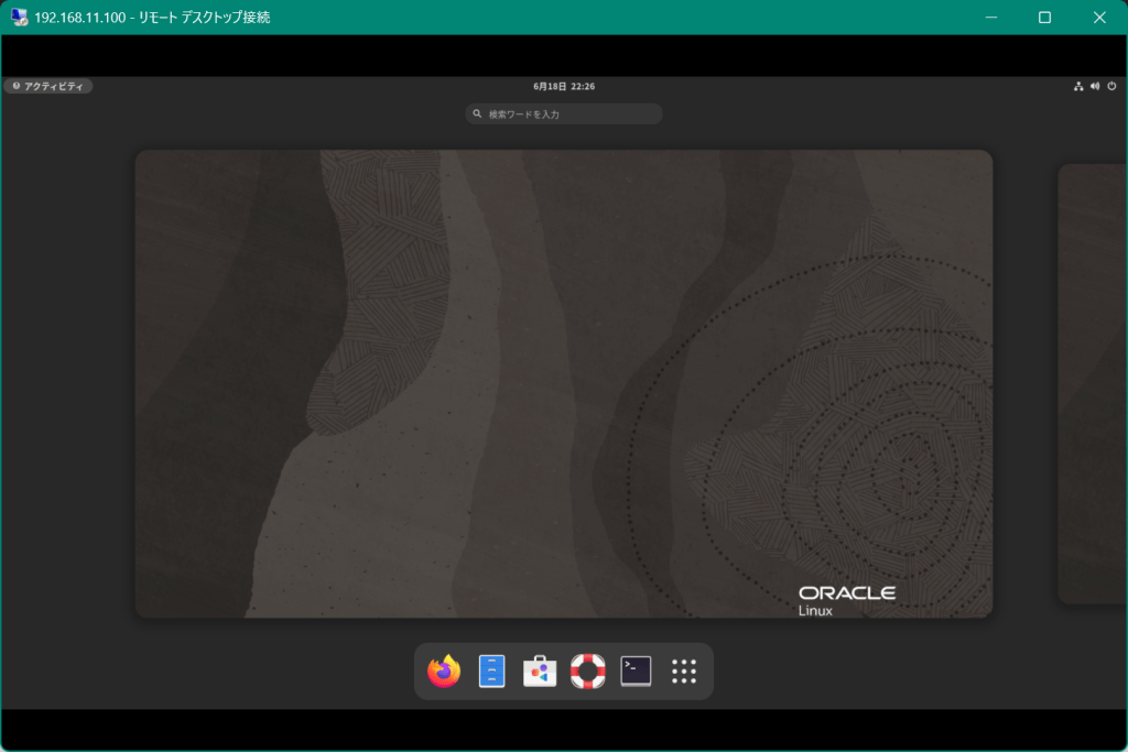 Oracle Linuxのデスクトップ画面が表示されます。
