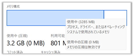 「メモリ構成」のグラフにてマウスカーソルを当てると以下のように説明のツールチップが表示されます。