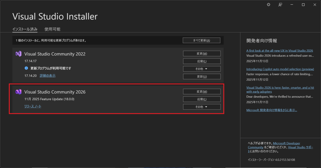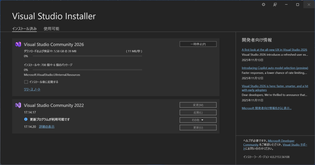 Visual Studio 2026の提供が開始されました。早速セットアップしてみましたのでその手順を整理します。