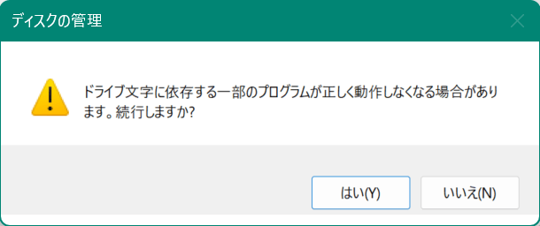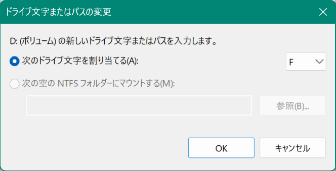 私の場合は、Fドライブとして利用していたSSDディスクはHyper-V仮想マシンの保存先のみとしての利用でしたので、対応としては単純に「ディスクのボリューム文字を戻すこと」となりました。